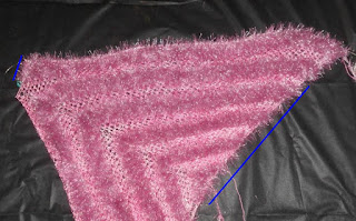 Посмотрите на диаграмму. Получается, что мы вязали и правую, и левую половину палантина одновременно. Центральная петля нашего треугольника = середина палантина.