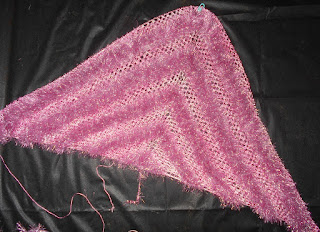 А я всё-таки вяжу палантин… Уже начала углы формировать, да загрузили бесплатной работой, пришлось отложить.