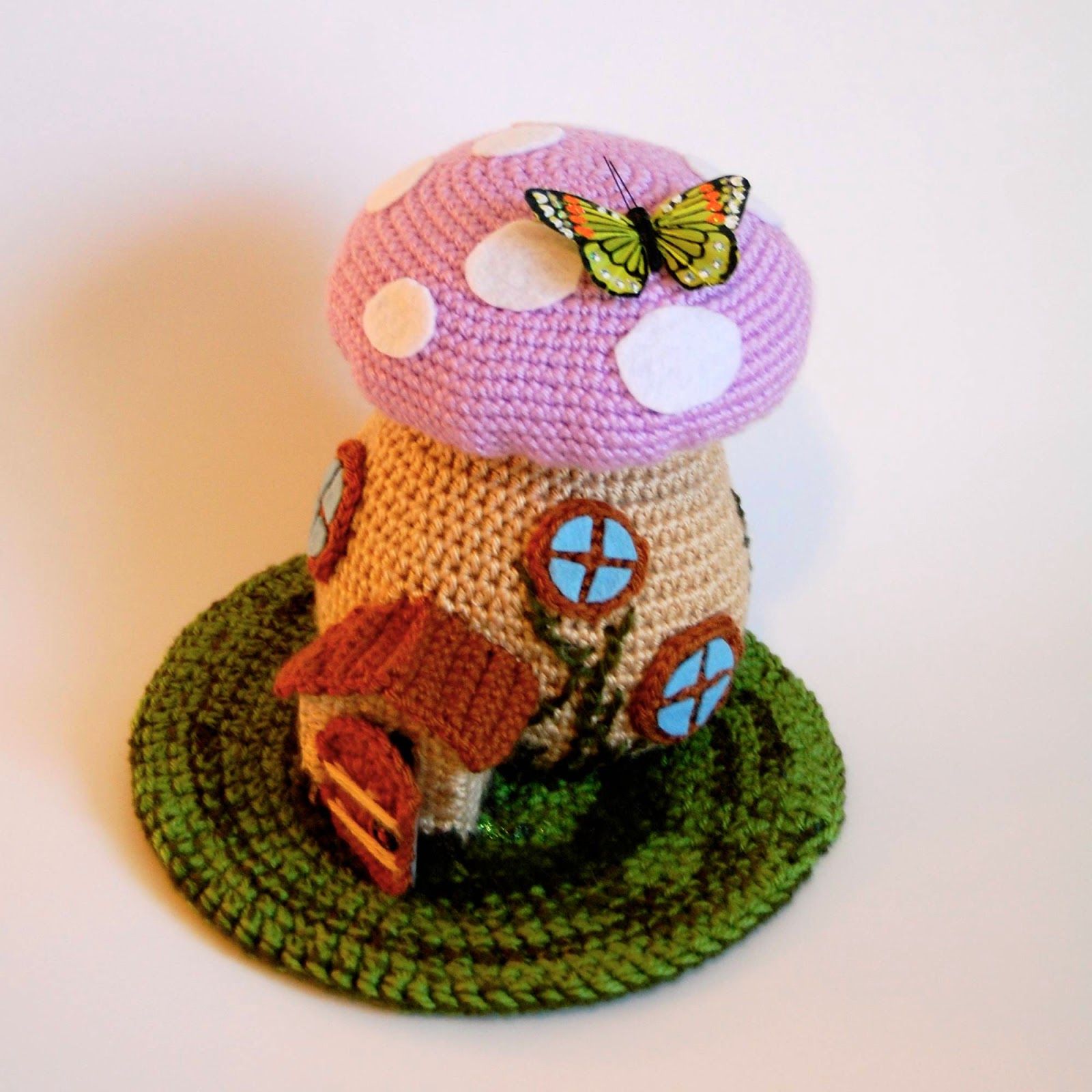 Идеально подходит для весенней дисплей, этот домик будет приветствовать крошечных волшебных фей. Вы будете любить с помощью простых стежков и весело украшения, вязание крючком дома, и дети будут любить мерещится тайный мир внутри. Текстуры изменяющие пряжа создает идеальный ландшафт со множеством зеленых оттенков. Сладкий бабочка лежит на верхней и крошечная дверь открывается и закрывается.