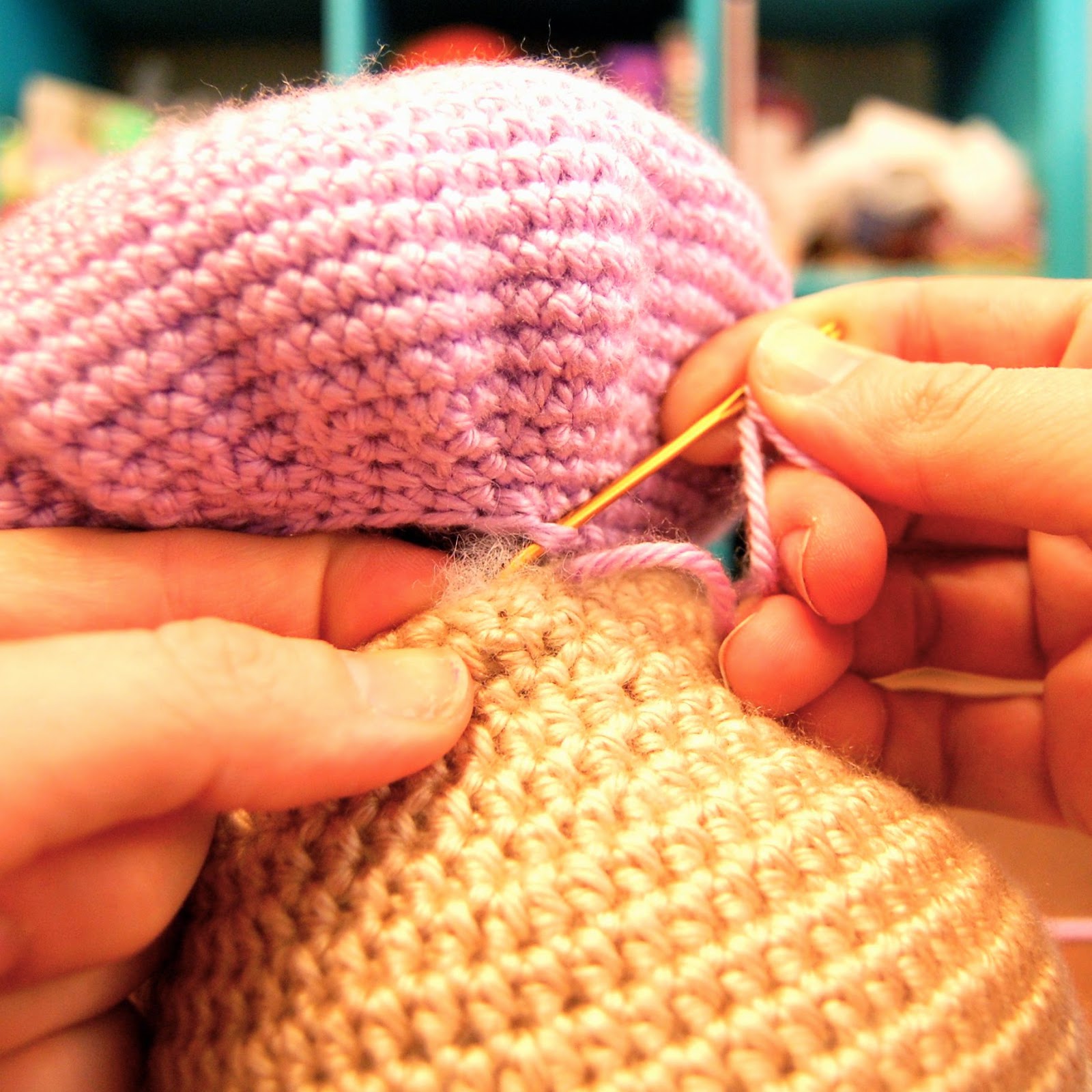 закреплять, оставляя за собой длинный хвост. Нить иглу пряжи с пряжей хвост. Продеты в последнем туре стежков и потяните, чтобы закрыть отверстие. Плетение конца внутрь.