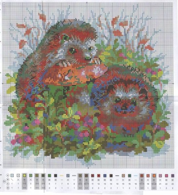 Ой! Какие миленькие ежата. Красиво оформленная подушечка. Сочные, яркие цвета.