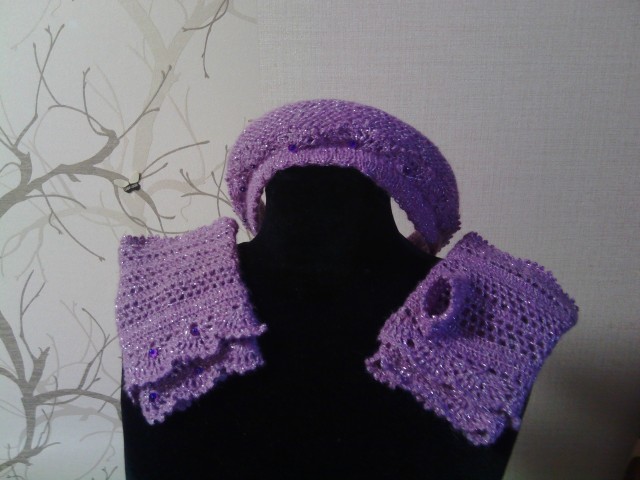 шарф спицами и крючком, митенки -крючком, полоска-основа спицами, отделка -крючком.