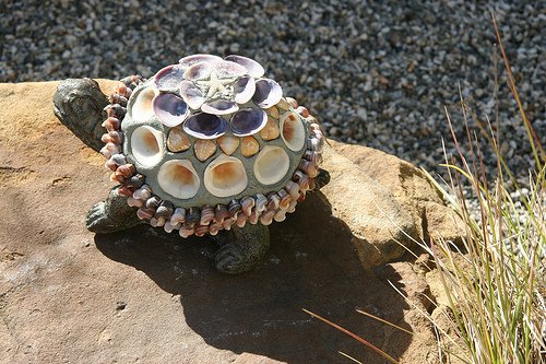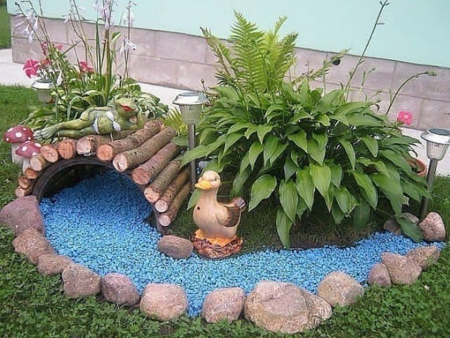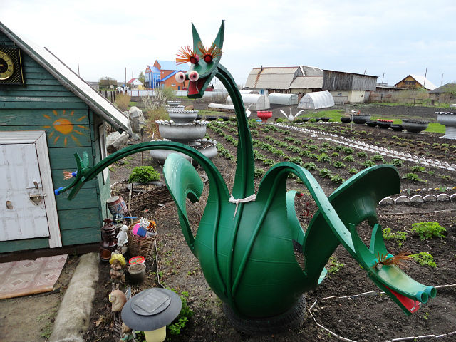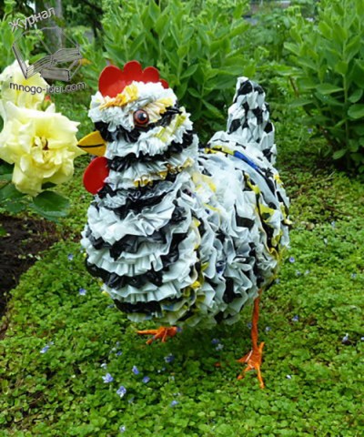Вот что никогда не нравилось, так это садовая скульптура, хотя тот цыплак в кроссовках сделан очень остроумно. По мне самое оно — камень, брёвна и керамика. А живые существа пусть сами приходят.