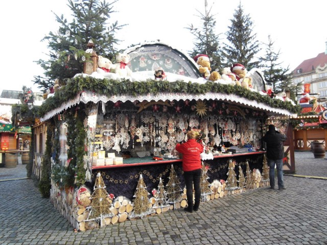 Сразу за Старым рынком, на котором расположена историческая ярмарка, начинается Прагерштрассе, знакомая каждому любителю шоппинга. Последние годы там тоже устанавливаются павильоны, развешиваются украшения, так что там тоже новое место для рождественского базара.