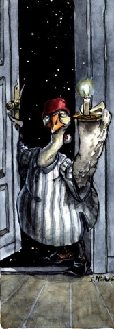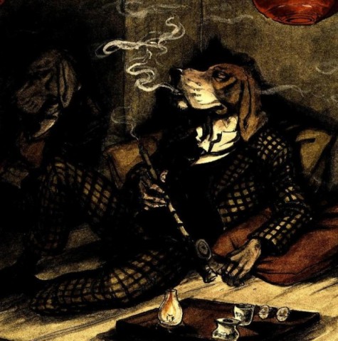 Сразу вспомнился из детства немецкий фильм «Карлик-нос». Будь я ребёнком меня напугали бы эти картинки, как и фильм.