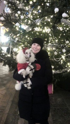 Я своих тоже вытащила 31 декабря на прогулку — оторвала от праздничного стола. Может, встречали во время прогулки маленького белого пуделишку в шапочке-олень? Это фото с Камергерского переулка.