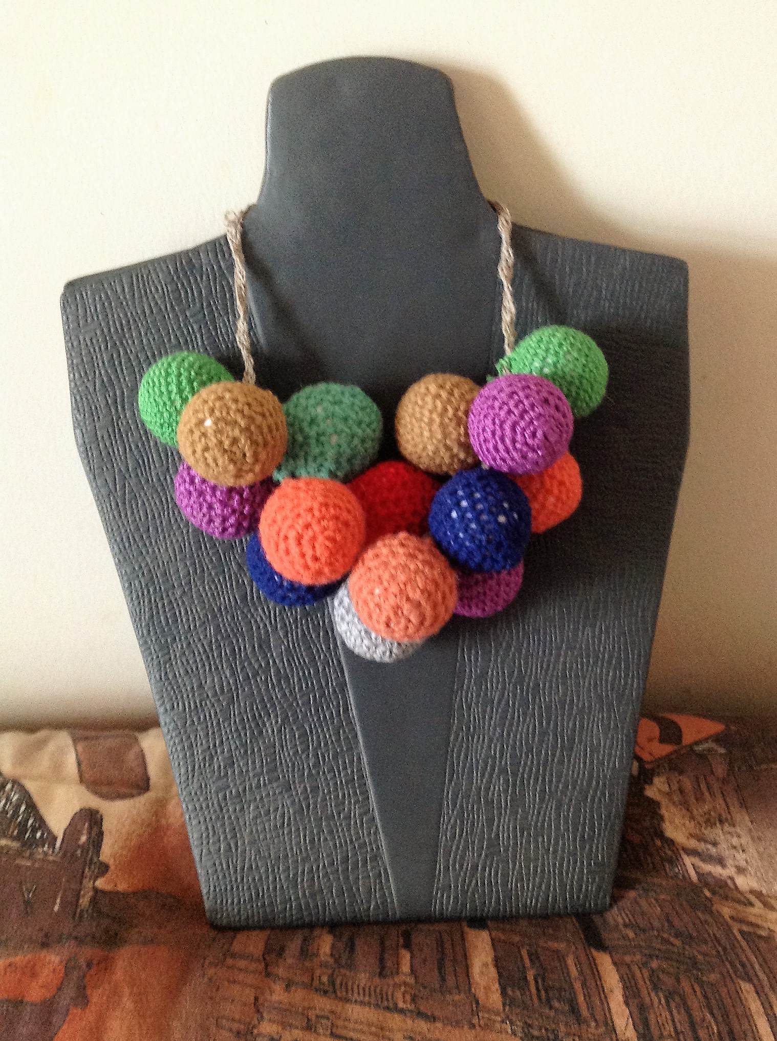 Остались поролоновые шарики и связались вот такие бусы. Посадила их на льняной шнурок. Не уверена, что буду их носить, а то может и сподоблюсь....