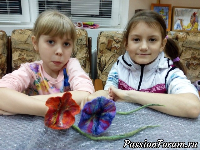Здравствуйте, дорогие. Со всеми праздниками вас! И самое главное, с ВЕСНОЙ!!!! Женщины расцветают как цветочки))) Вот и я решила с детками цветов навалять))) А когда закончился мастер класс- и все ушли, я не выдержала и наваляла целый букет)))