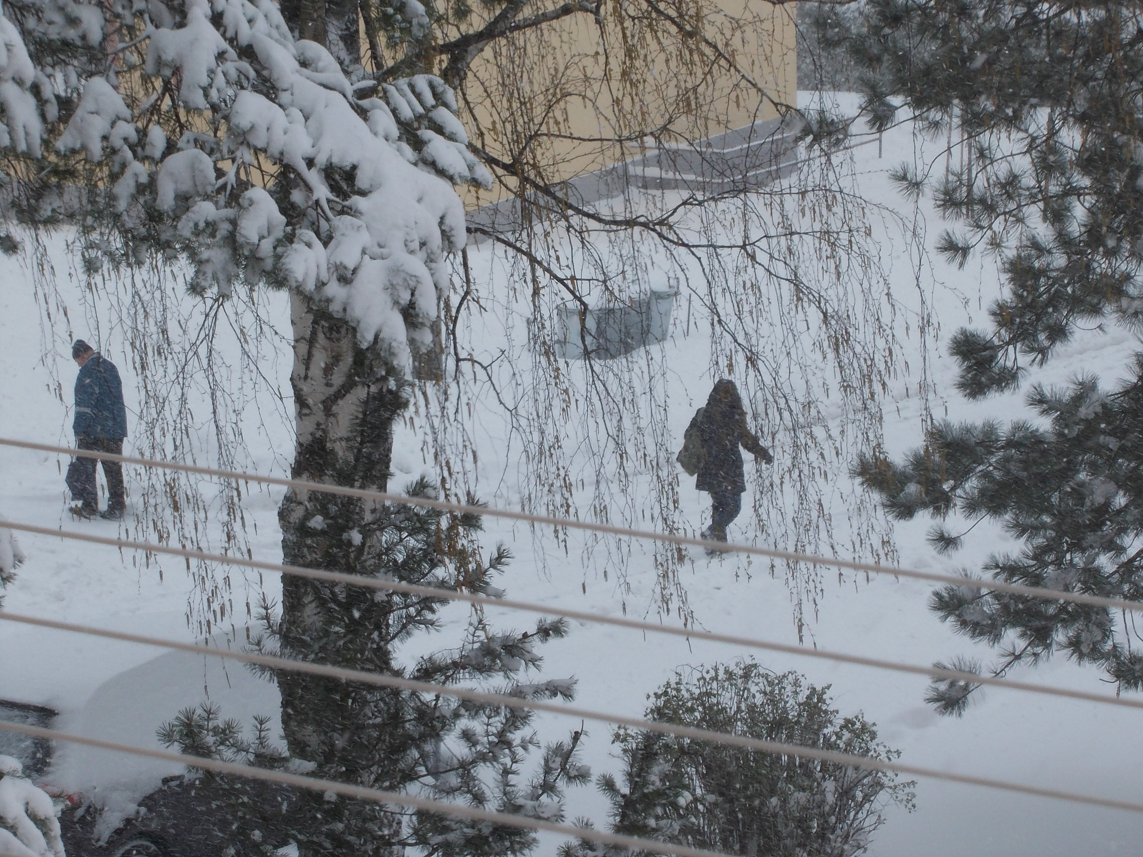 Pogoda u nas ochen' izmenilas'. Segodnja v noch bylo minus 8, sneg padal nochju i segodnja celyj den'. Est' xolodno, mnogo snega. Vesna stalas' zimoj.