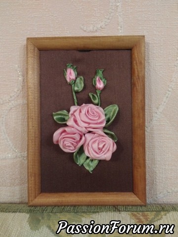 Розы, вышитые атласными лентами