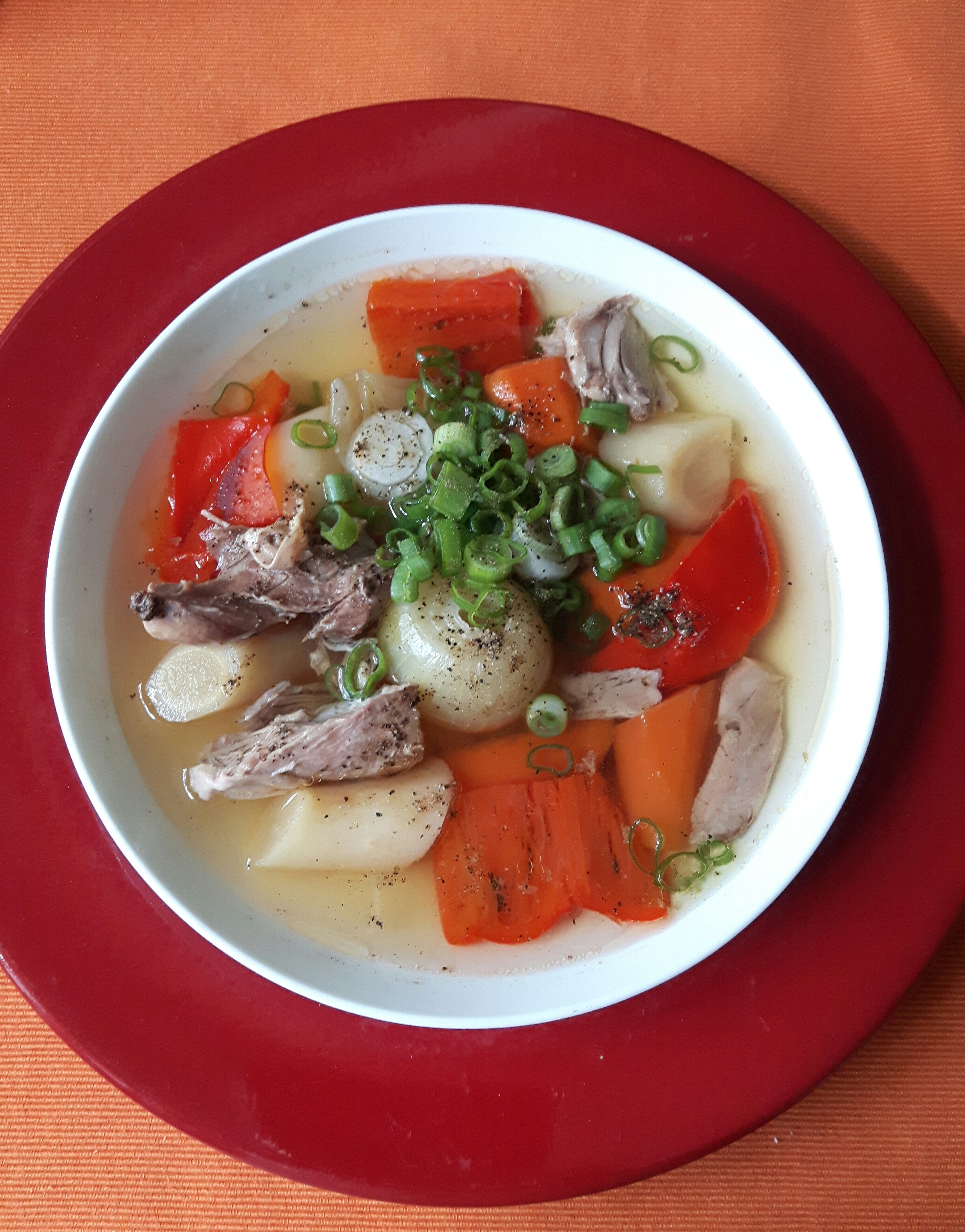 Это такой 3-4-х часовой вывар, если мы варим из мяса индейки. И 4-5-ти часовой вывар, если из говяжьего мяса. Я варю исключительно из мяса индейки, а точнее из её бедра на оооооочень-очень медленном огне со слегка приоткрытой крышкой. Всё это дело томится постепенно, варится, разваривается неспешно. Обычно закидываю 3 шт бедра, поэтому покупаю 2 упаковки. Одно уходит в морозилку. Так вот, для этого супа неоходимы: