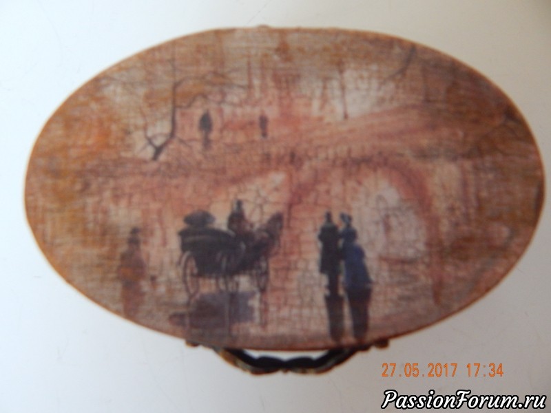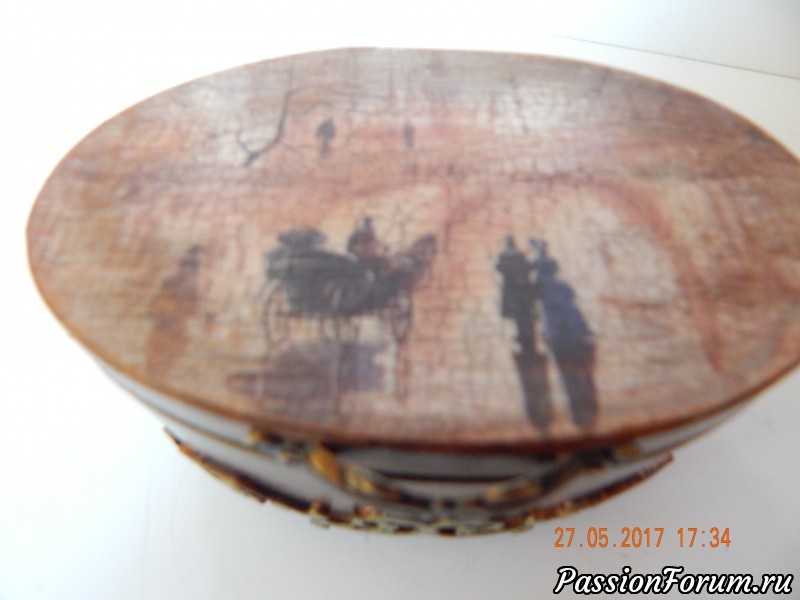 домучила вторую шкатулочку.работать интересно.но вот не люблю маленькие размеры.нет полёта для фантазии.(ну это как по мне).верх шкатулки карта.объём это вырубка из картона. на ножки -обхваты для бусин