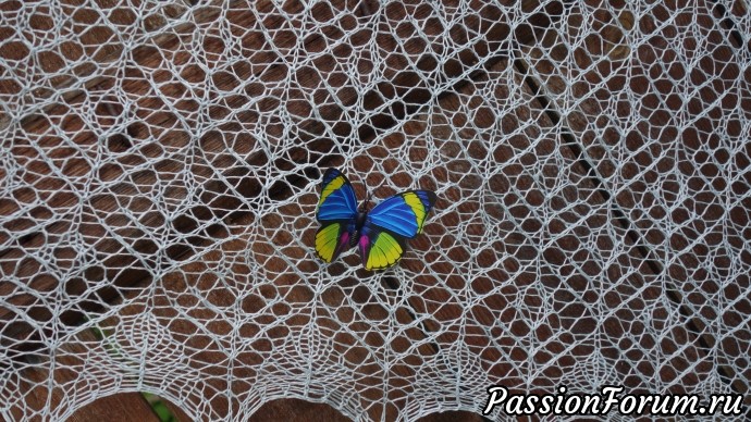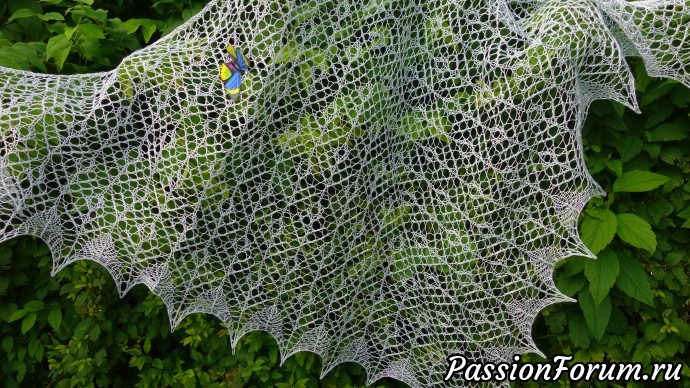 когда сняла с рамы шаль была как накрахмаленная, но потом повесила шаль