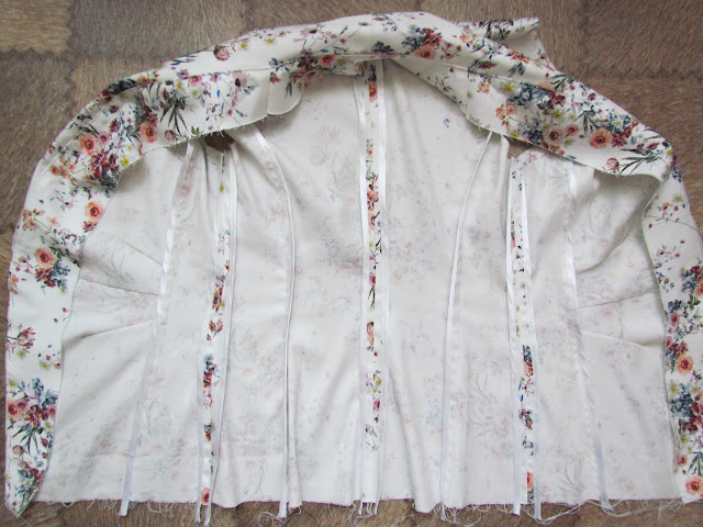 Так как жакет летний и шьем его без подклады, я предложила края обработать косой бейкой.