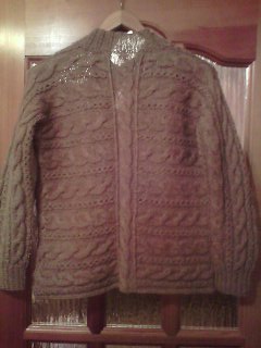 Я тоже за вариант Натальи — отдельно связать 1, 2 или, если есть нитки, 3 полосы. Пришить. Потом перевязать воротник и планку (с провязными петлями), как предлагает Марина. И будет шикарная вещь!!! Делов то…