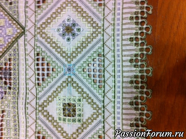 Это работа над краем. Ох, и пришлось мне потрудиться, работа на таком ограниченном пространстве в ниточках, не разгуляешься! А, я привыкла к "масштабам"!