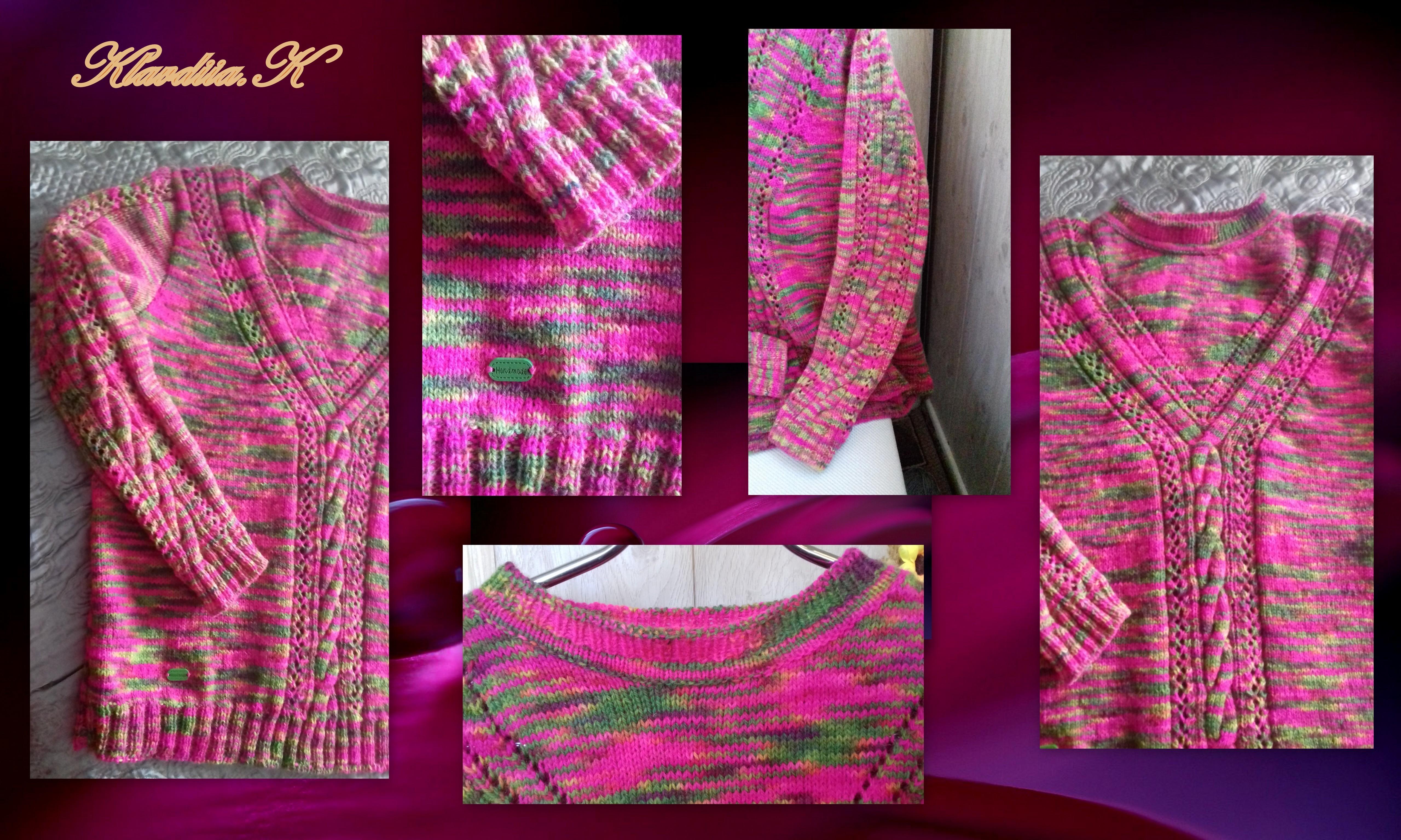 Если бы Вы связали данным узором однотонный свитер, а гладким ( или очень мелким, типа «рис», или не мелким, но с повторяющимися постоянно элементами) узором из этой секционки, сделав акцент на какую-то деталь, типа ворот-хомут… — то получили бы два безукоризненных свитера! И полное моральное удовлетворение — возможно тоже)))