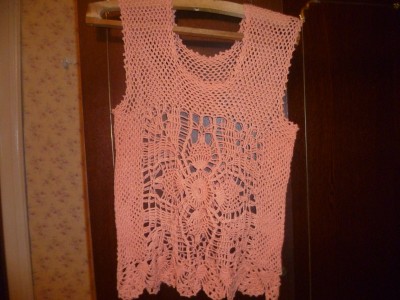 Девочки-красавицы, привет, все вяжут шапки и свитера, а я связала ажурную майку-жилетку.