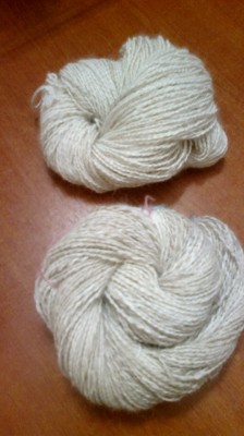 Сам процесс превращения собачей шерсти в ниточки уникален. В городе у нас только один человек прядет вручную. Я всем родным навязала лечебные пояса и по носочкам. Но носочки используем только в лечебных целях. Т.е. чувствуем, что заболеваем – прыг в носочки, и будет нам счастье.
