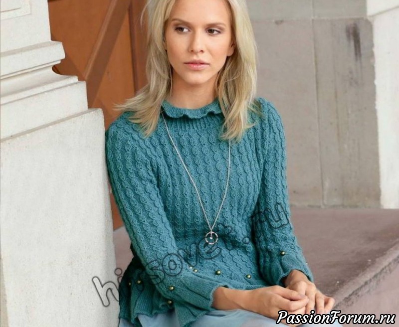 Описание и схема пуловера - https://hitsovet.ru/pulover-s-ryushami/