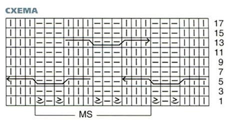 2 ряд и все четные ряды вязать по рисунку;
