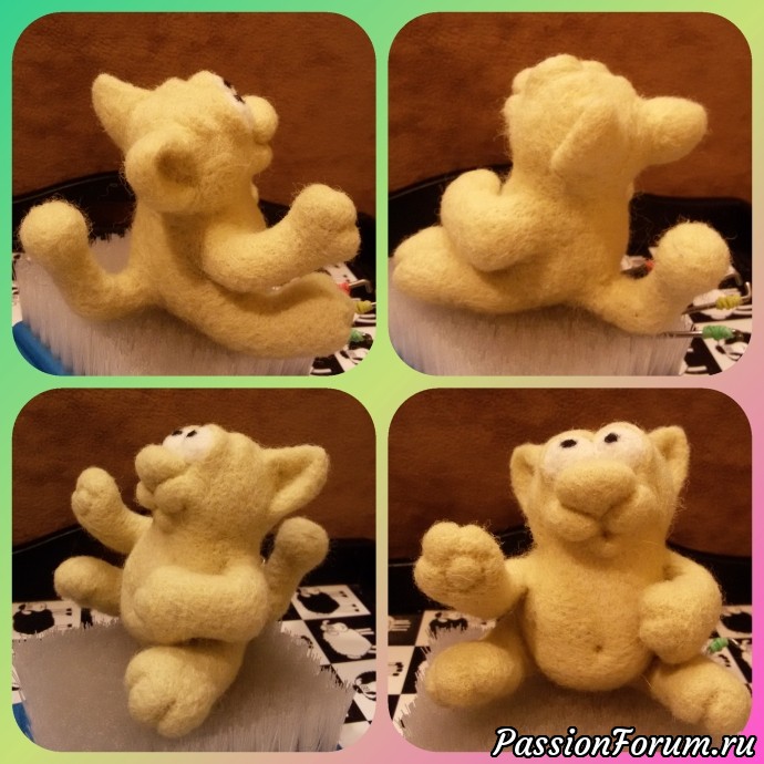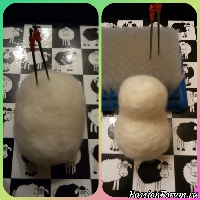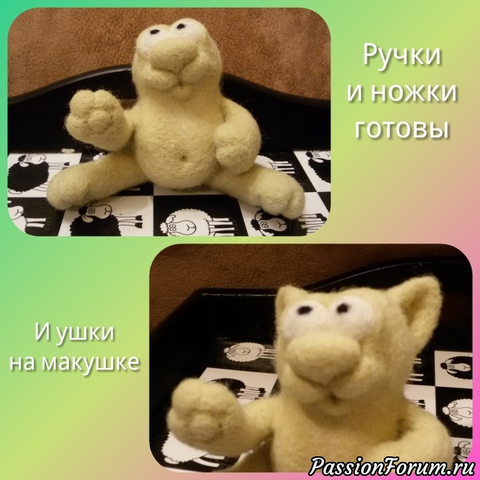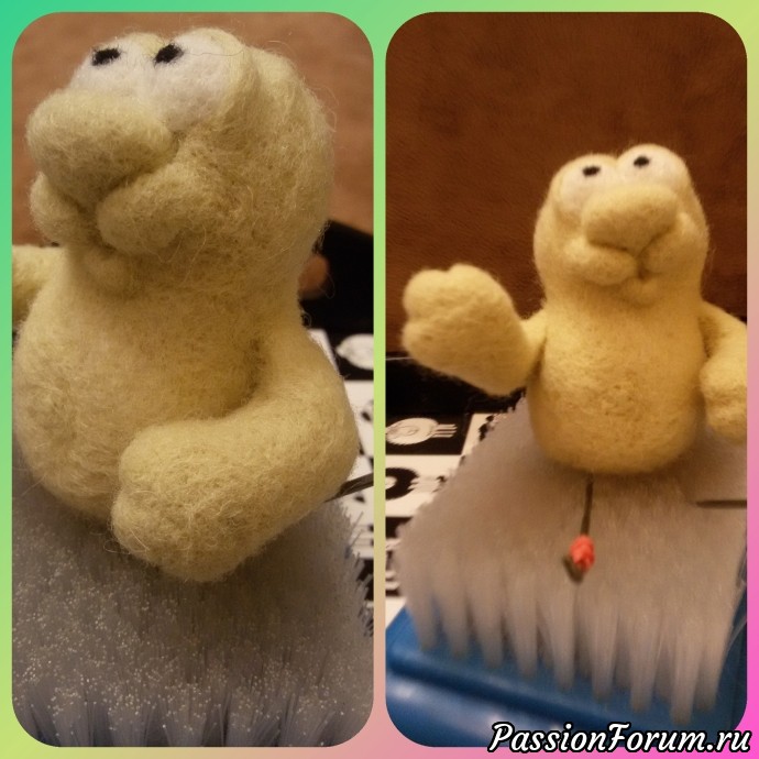 Ушки (и веки тоже) валяю сразу тонкими иглами № 40. Ставим ушки на место.