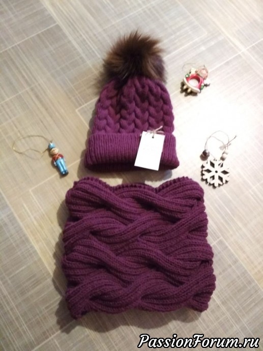 следующим был комплект из снуда в 2 оборота из ализе суперлана макси 100м 100гр, спицы 7,0эргономик(честно скажу не очень понравились),и шапочки "такори", связанна из ализе реал 40, спицы 4,0