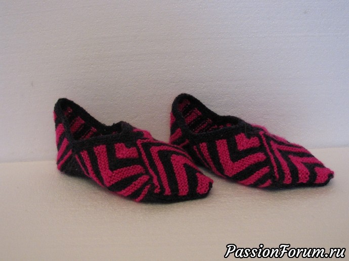 Всем доброго времени суток! Я снова с любимым моим модульным вязанием... теперь тапочки-следочки. каждая тапочка связана из 6 квадратов (очень популярная инетовская схема), два квадрата на подошве однотонные, моя доработка - три платочных ряда по верхней части следочка - так плотнее сидит на ноге. Тапули сегодня уже подарены маме моей подруги, мы сегодня поздравляли её с днем Победы. Доделывала уже перед самым выходом, поэтому фото было сделано "на бегу", цвета в действительности - т. фиолетовый и ярко розовый, но "ловить" освещение для полной передачи цвета уже было некогда... Спасибо всем, кто заинтересовался!