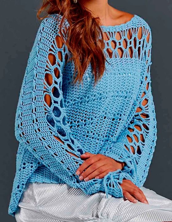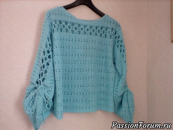 Я вязала от рукава единым полотном 2 части отдельно, спинку и перед, потом сшивала.