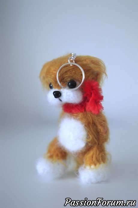 Рыжий щеночек, брелок,связанный крючком. Размер - 10 см без хвостика. Внутри проволока, можно придавать любые позы.
