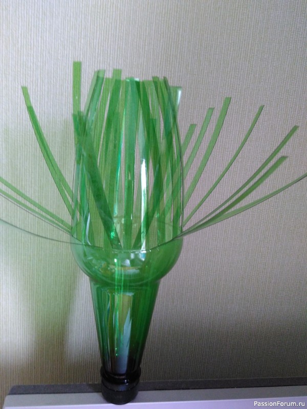 У кого на окнах не растут живые цветы, предлагаю сделать искусственный из пластиковой бутылки и бумаги. Уход за ним минимальный: поливать не надо, лишь изредка рекомендуется сдувать пыль.