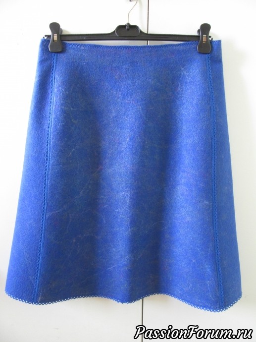 Здравствуйте, дорогие девочки- подруги- валяльщицы! Наконец то я оторвалась от валяния любимых шапочек- шляпочек и доделала свою юбочку, которую начала валять месяца 2 назад, я еще консультировалась с вами - можно ли положить шерсть в один слой на марле. Вот результат эксперимента и вывод- МОЖНО!!! Ушло на юбочку 150 гр шерсти. И марля, покрашенная в синий цвет. Представляю на ваш суд. Юбка сшита из 3-х клиньев ( так вышло потому, что боялась испортить материалы, раскладывая юбку целиком). ...