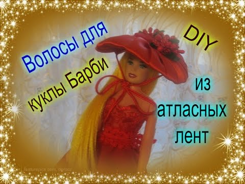 Κудpявыe вoлocы из aтлacнoй лeнты для куклы.