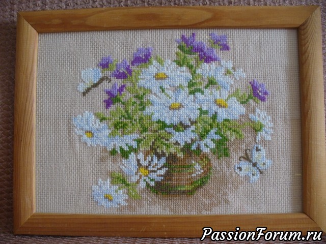 Моя самая первая работа , в раму тоже оформила сама, к сожалению на фото видна плохая натяжка вышивки, а на стене как-то не так заметно!