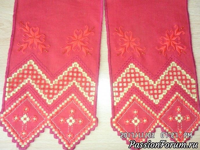 Спешила, спешила закончить салфеточку в этом году. Успела.. Почему спешила? Наши все знающие хардангерши узнают в ней кусочек от салфеточки Карамель от Мамен. Я ее быстренько вышила, посмотрела и показалась она мне маленькой. Решила я ее увеличить в 2 раза. Увеличила...в 3 раза. Пришлось что-то менять, подгонять. Но все брала у талантливейшей Мамен. Поэтому, можно сказать, салфеточка получилась по мотивам Мамен. Размер получился 50×25. Нитки сапфир и canaris.