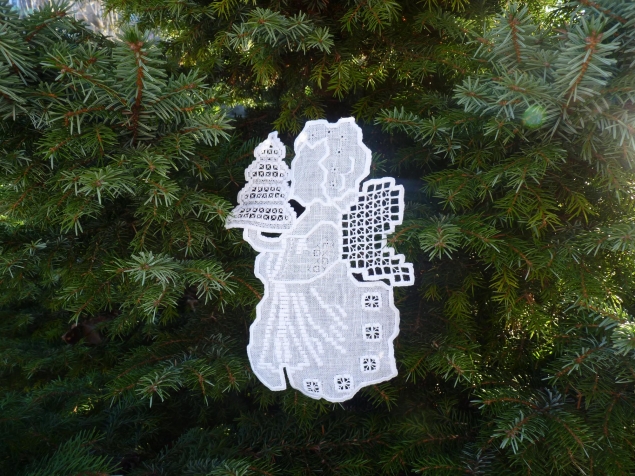 Игрушка на новогоднюю елку в технике хардангер