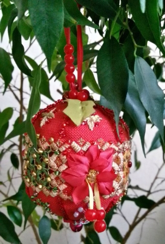 Игрушка на новогоднюю елку Девочки, вот мой новогодний шарик, который мы вышивали в прошлом году с Людмилой. Тогда ( по семейным обстоятельствам) я его не закончила. А сейчас хочу вам показать его... Ждет свою новогоднюю елочку! Спасибо, что заглянули!