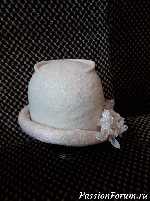 Здравствуйте, дорогие мастера!!! Как давно я ничего не выкладывала на сайт. Времени совсем нет. Новая работа выжимает меня как лимон. Сил на творчество совсем не остаётся. Весной сваляла шляпку-клош. Шерсть германская 21 мкр. Вискоза троицкая и болгарская. Шляпка тончайшая, но плотная. На голове совсем не чувствуется. Очень тепло и комфортно в ней. Шерсти ушло 30 гр.