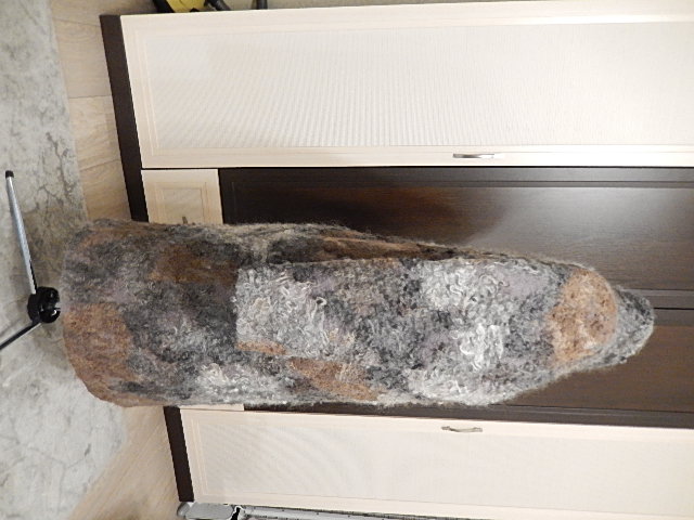 Добрый вечера друзья, форумчане! Наконец то я вчера завершила свою работу по изготовлению зимнего пальто-шубки, модель пальто "кокон". В прошлом году купила МК Яны Петрик пальто "Снежная королева", и вот в этом году воплотила его в жизнь. Но свалять было проще, чем доработать с учетом всех швейных технологий. Впервые сажала на утеплитель, впервые пришивала шубные крючки, но это тоже неплохой опыт. Хорошо, что есть интернет, в котором можно найти любую технологию и посмотреть, это помогает. У нас сегодня первый снежный день, но идет мокрый снег и поэтому фото сделала дома на манекене, на улицу еще не надевала. Но это первое пальто, в котором мой муж не нашел недочетов.