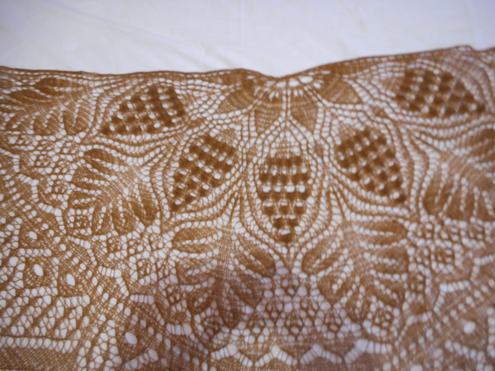 Размер шали:210 см-по верхнему краю и 92 см-по вертикали.Весит шаль 122 г.