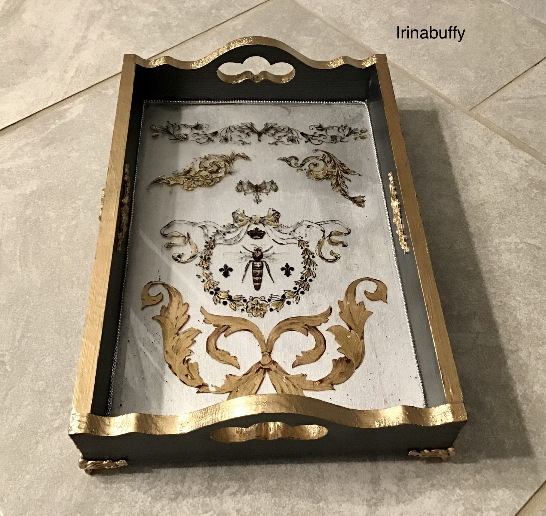 Томочка, спасибо за оценку! Я так и сделала на подносе, дно покрасила и положила пластик, на зеркале делала другим способом, ищу варианты