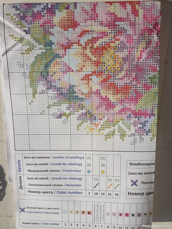 используется полный крест,французский узелок и бэк стич.Схему разделила на 4 части