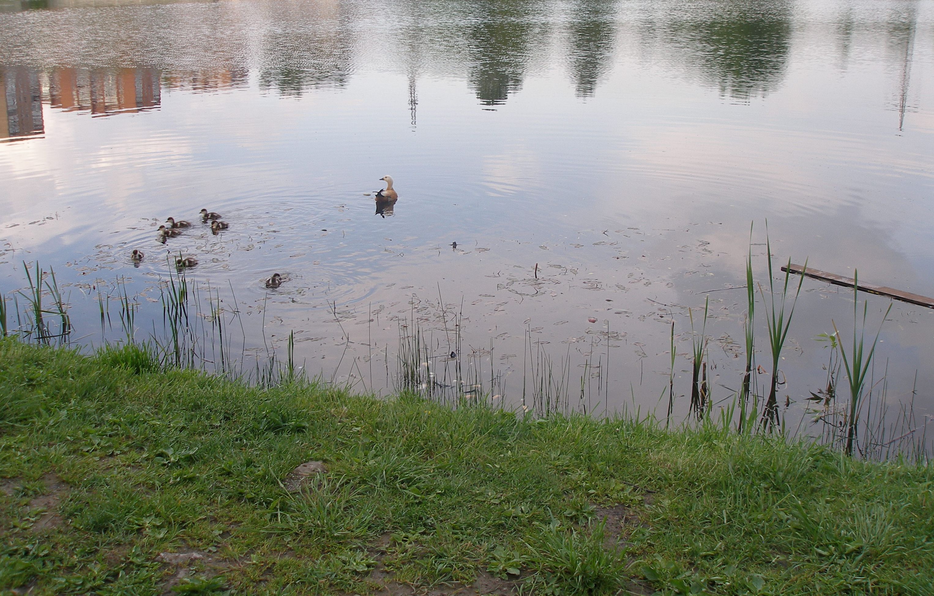 Точно, их семь здесь на фото, сейчас исправлюсь. По-моему, в этот раз на пруду два выводка, в одном 6, в другом 7.