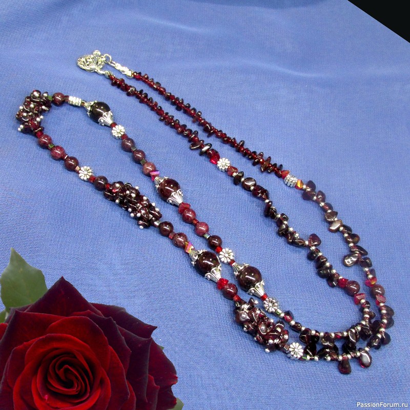 Приветствую вас, дорогие рукодельницы! Хочу вам показать свои работы с гранатом альмандином, объединённым в серию "Марочное вино".