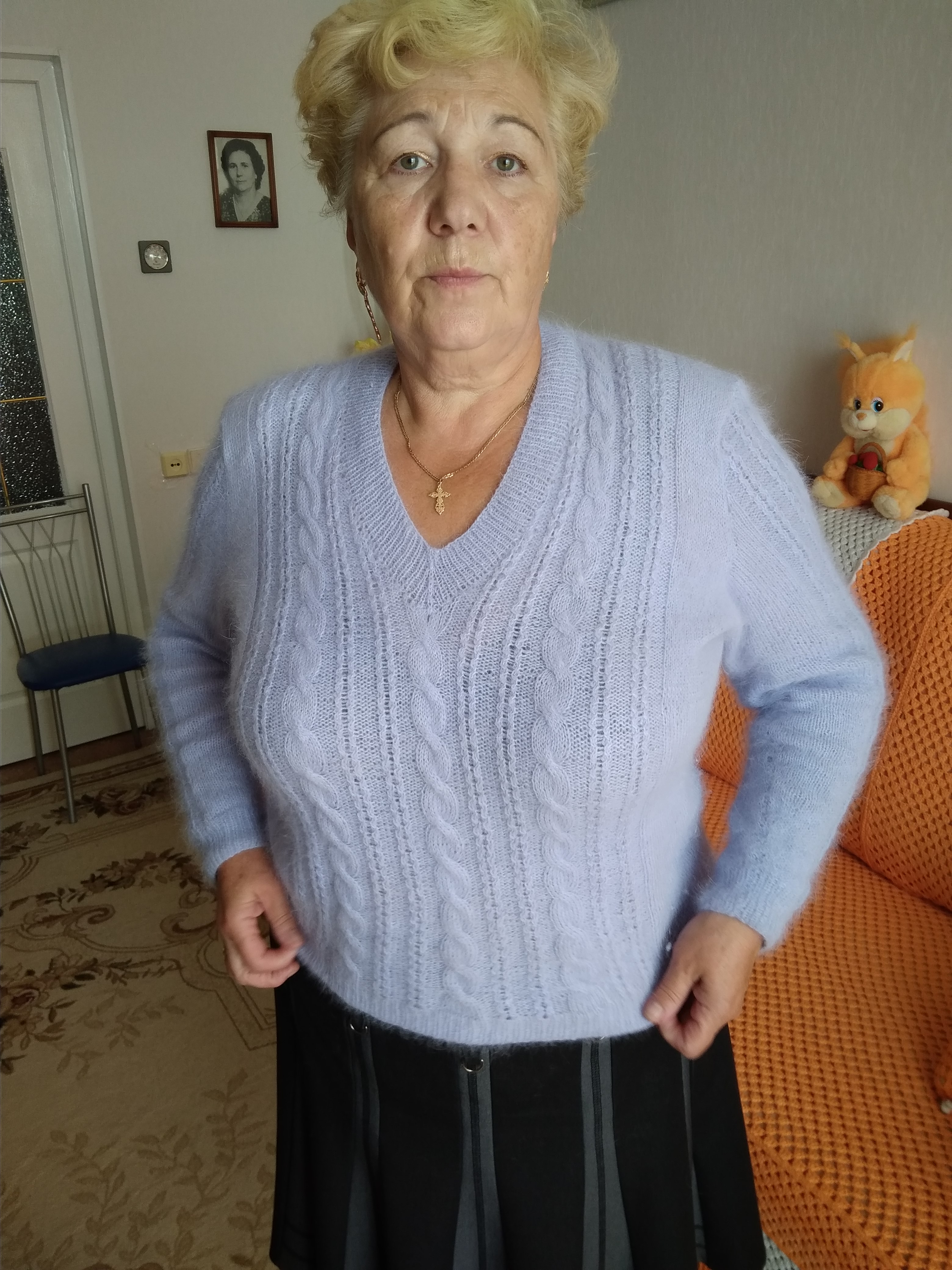 И джемпер, и пуловер получились замечательные! Вы почувствовали душу пряжи и удачно подобрали к ней и узоры, и плотность вязания, и силуэты изделий. Каждая петелька связана с любовью, это сразу видно.