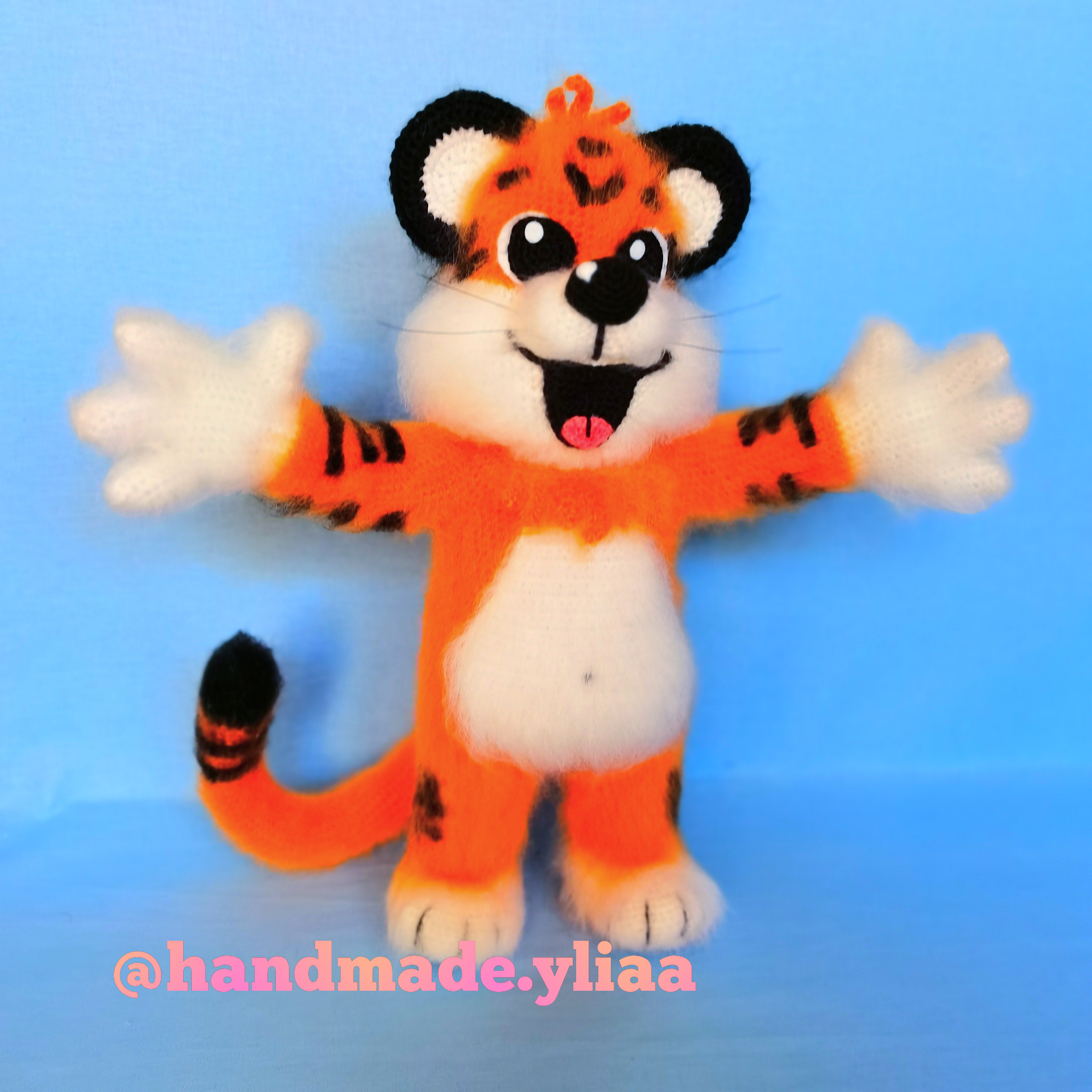 Представляю Вам своего Тигрёнка. Вязала его по картинке. Высота 40 см. Проволочный каркас. Надеюсь Вам понравится.