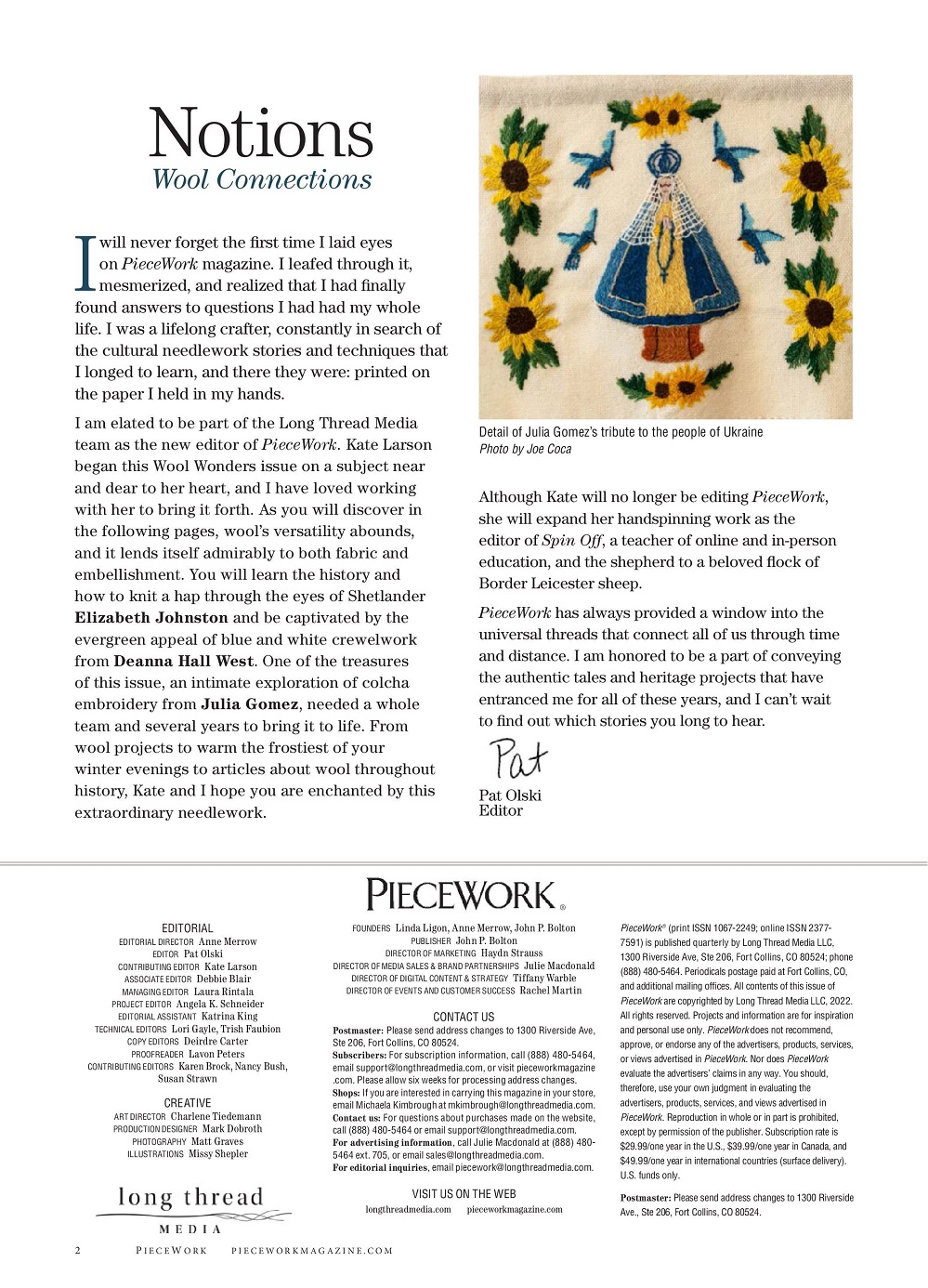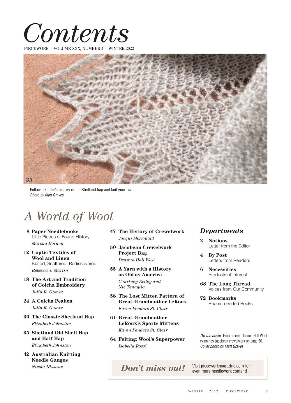 Коллекция проектов для рукодельниц в журнале «PieceWork Vol.XXX №4 Winter 2022»