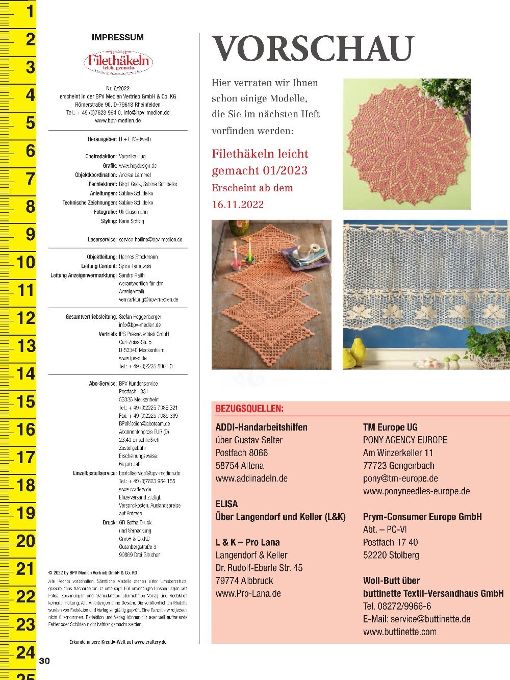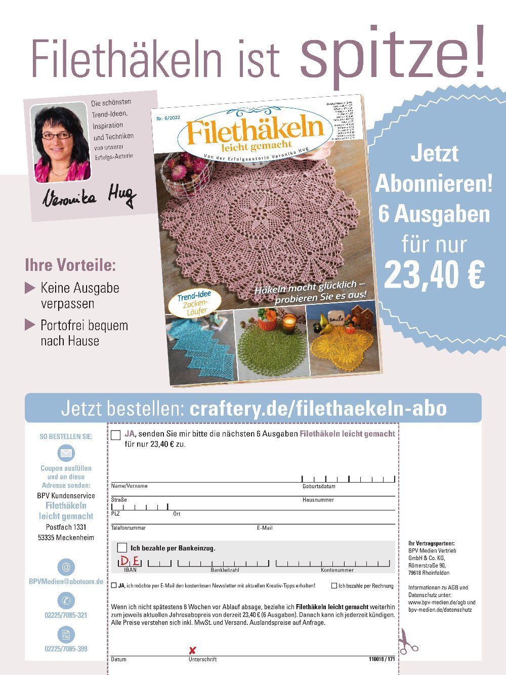 Немецкий журнал «Hakeln Das MaschenMagazin» предлагает проекты для вязания крючком. Здесь вы найдете вязаные изделия разного плана – игрушки, пледы, накидки, шали, корзинки для рукоделия и много других полезных вещей для комфорта и уюта вашего дома. К каждой модели даны выкройки и инструкции.