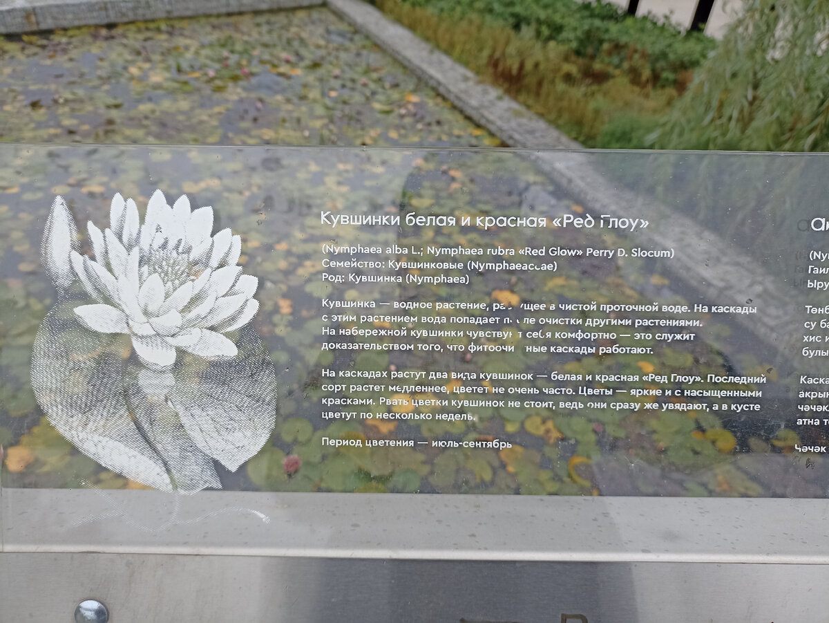 Мы обошли только большое озеро, а недалеко есть ещё малое озеро Кабан. Пока обходили озеро, видели информационные таблички с описанием растительного мира, кафе, причал для посадки в прогулочные лодки. Фонтаны отключили уже на холодное время года.