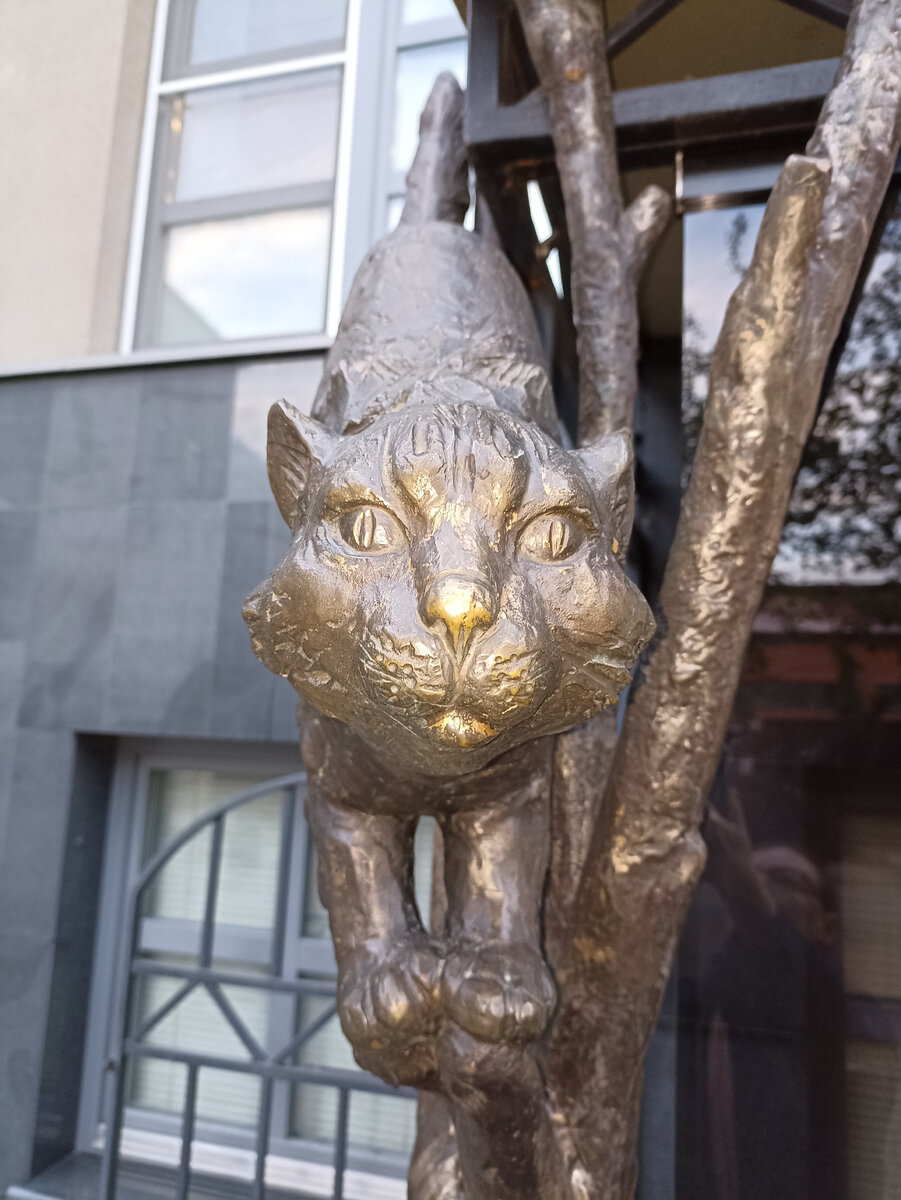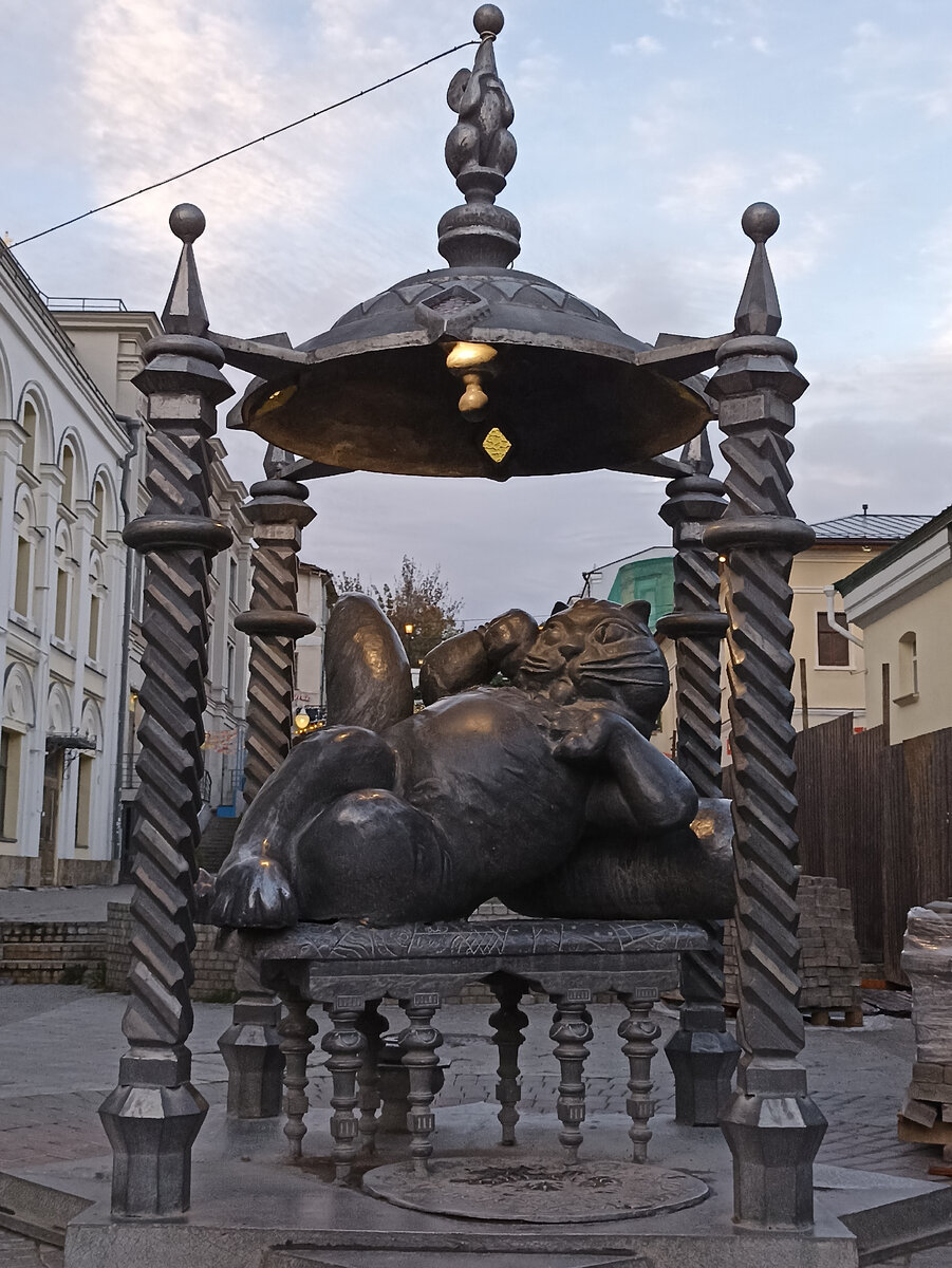 Во дворе отеля "Нагай" на Баумана, где располагается стойка с заказом различных экскурсий и является местом сбора туристов для дальнейшей посадки в автобус (отсюда 5 октября мы отправились на остров Свияж) скульптуры котика и кабана.